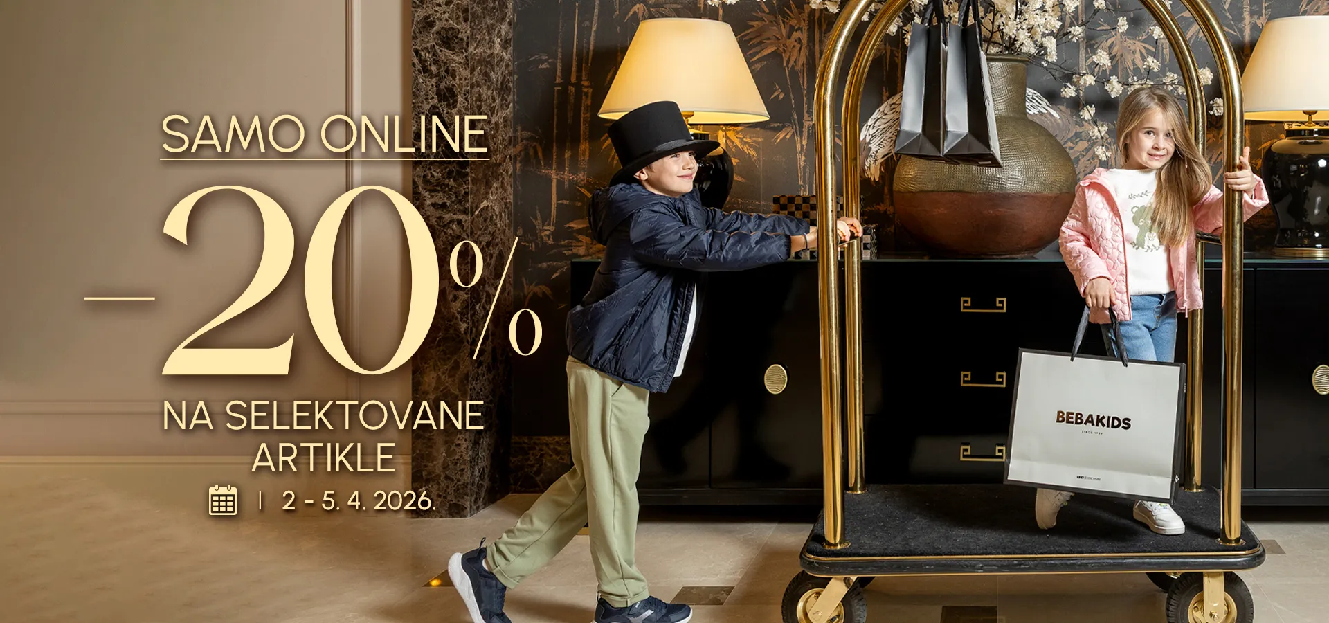 Iskoristite Bebakids ponudu od 13. do 17. februara 2026. i kupite dječju garderobu na popustu do 60% uz dodatnih 20%. Jakne, kaputi, haljine, trenerke i zimska garderoba za bebe, djevojčice i dječake do 14 godina – vrhunski kvalitet i stil po povoljnim cijenama.