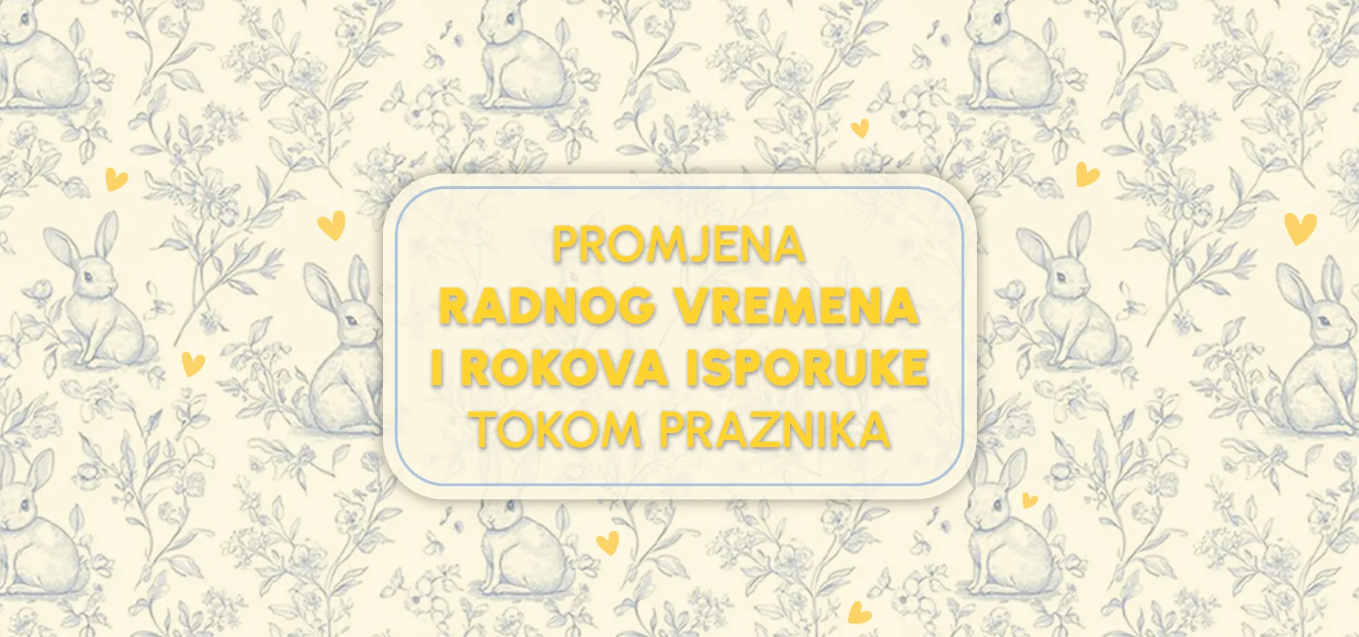 Povodom uskršnjih praznika, naše radnje će raditi po izmijenjenom radnom vremenu. Online šop bebakids.me neće raditi od petka, 10.04., ali je poručivanje dostupno u svakom trenutku. Sve porudžbine biće obrađene prvog radnog dana nakon praznika, u utorak, 14.04.2026.